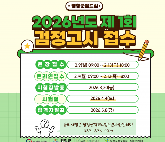 평창군청소년상담복지센터에서 청소년안전망 직원(팀원 1명)을 모집하고 있습니다. 청소년에 대한 애정과 관심있는 분들은 아래 내용을 참고하여 채용에 응시하여 주세요. 1. 채용방법 (공개경쟁채용) 가. 1차 : 서류심사 나. 2차 : 면접심사(서류심사 합격자에 한함) 2. 채용일정 (※채용일정은 사정에 따라 변경될 수 있음) 가. 서류접수 기간 : 2026. 02. 09.(월) ~2026.02.23.(월) 12:00까지 나. 서류심사일 : 2026. 02. 23.(월) 다. 서류합격자발표 : 2026. 02. 23.(월) 라. 면접심사일 : 2026. 02.25. (수) 마. 최종합격자발표 : 2026. 02.25. (수) 3. 응시원서 접수 가. 접수방법 : 이메일 접수에 한함 나. 접수처 및 접수 파일명 - 이메일 : parkgoldstar@naver.com 청소년안전망 팀원 지원 파일명 : (파일명 : 미디어전담_지원자 이름) - 메일 제출 후 담당자에게 접수 확인 요청 문자 발송(01O-946O-9988) * '꼭' 첨부파일을 다운로드하여 자세한 내용 및 서류작성 및 첨부서류에 대하여 확인하시길 바랍니다.