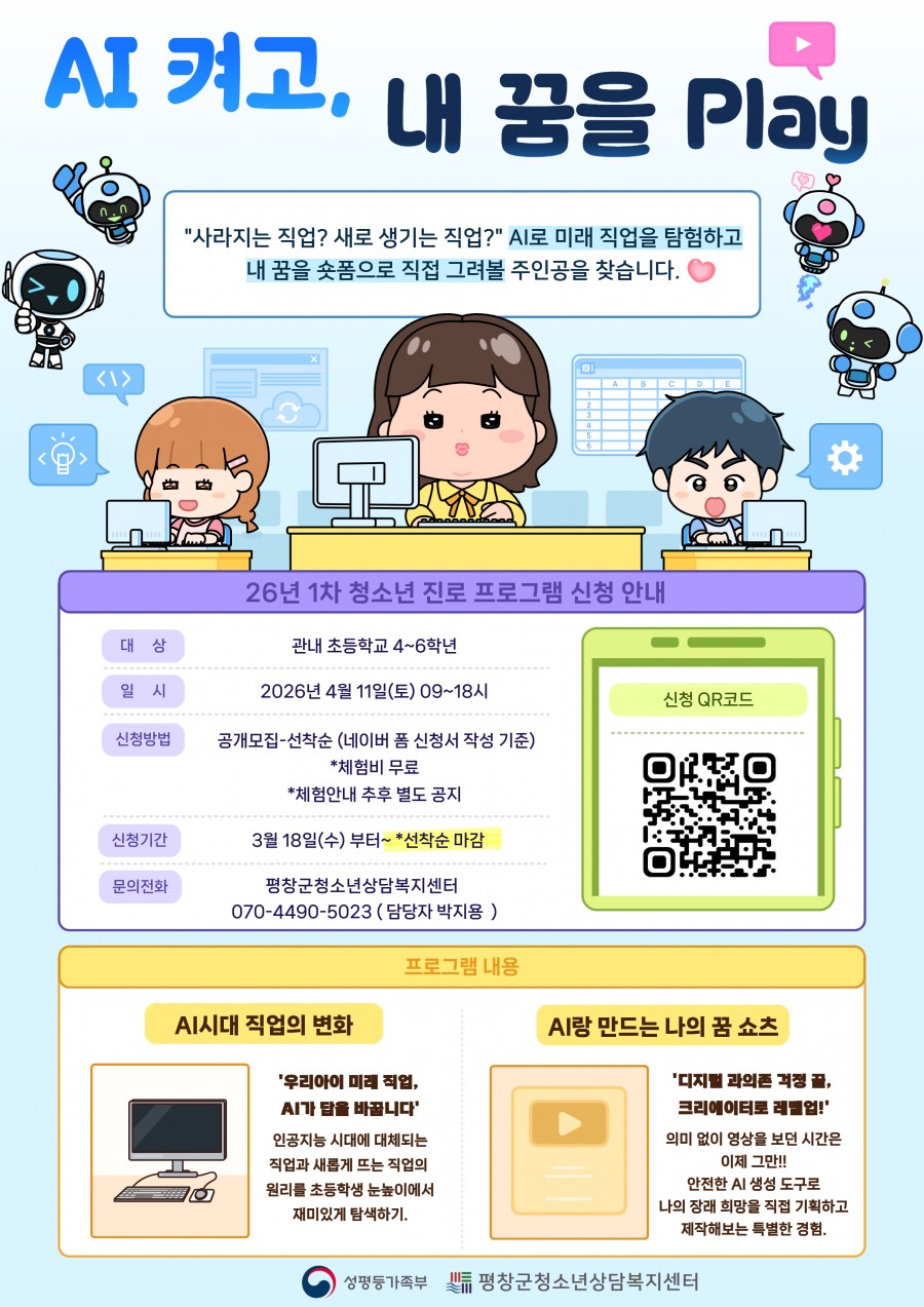 2026년 1차 청소년 진로 프로그램 신청 안내 "AI 켜고, 내 꿈을 Play"