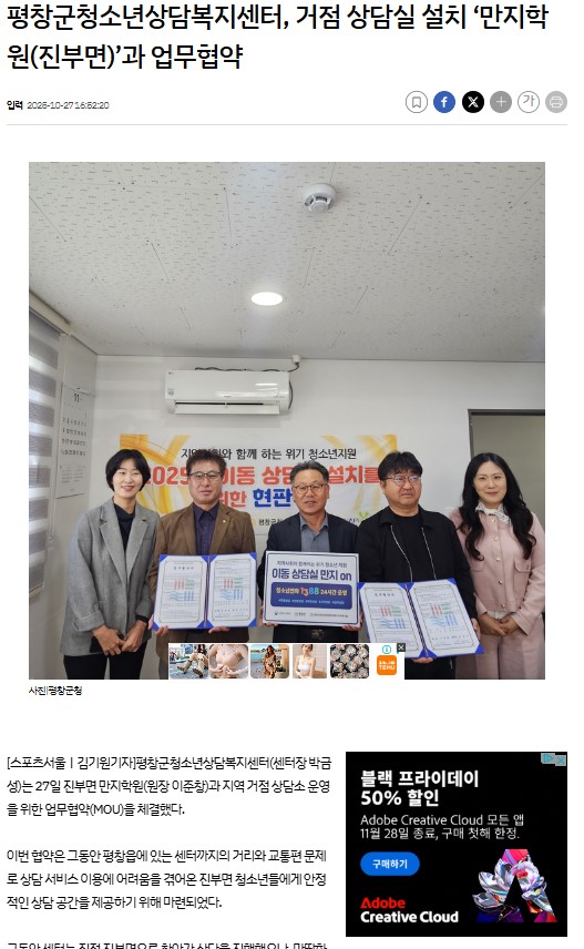 이번 협약은 그동안 평창읍에 있는 센터까지의 거리와 교통편 문제로 상담 서비스 이용에 어려움을 겪어온 진부면 청소년들에게 안정적인 상담 공간을 제공하기 위해 마련되었다.