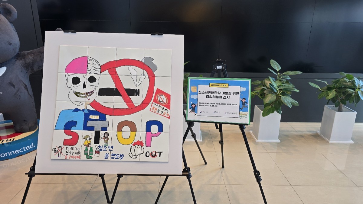 1. 일시 : 2025년 10월 29일(화) 10:00~ 2. 장소 : 평창군청 1층 로비 3. 내용 : 경찰동아리 (S.C.A.N) 청소년들이 제작한 청소년 유해환경 예방을 위한 '타일 협동화'를 군청 로비에 전시하였습니다. 군청 전시를 통해 지역사회 및 또래에게 청소년 유해환경에 대한 경각심을 일깨우고, 건강한 환경조성의 중요성을 전달하였습니다. 센터장 박금성은 “타일협동화는 단순한 미술작품이 아니라, 청소년들이 지역사회의 일원으로서 유해환경 문제에 대해 스스로 인식하고, 변화를 이끌어 내고자 한 의미 있는 표현”이라며 “이 과정에서 참여 청소년들은 공동체 의식과 책임감을 자연스럽게 배우는 계기가 되었고, 지역 주민들도 청소년의 시선으로 유해환경 문제를 다시 생각해 보는 기회가 되기를 바란다.”고 전했습니다.