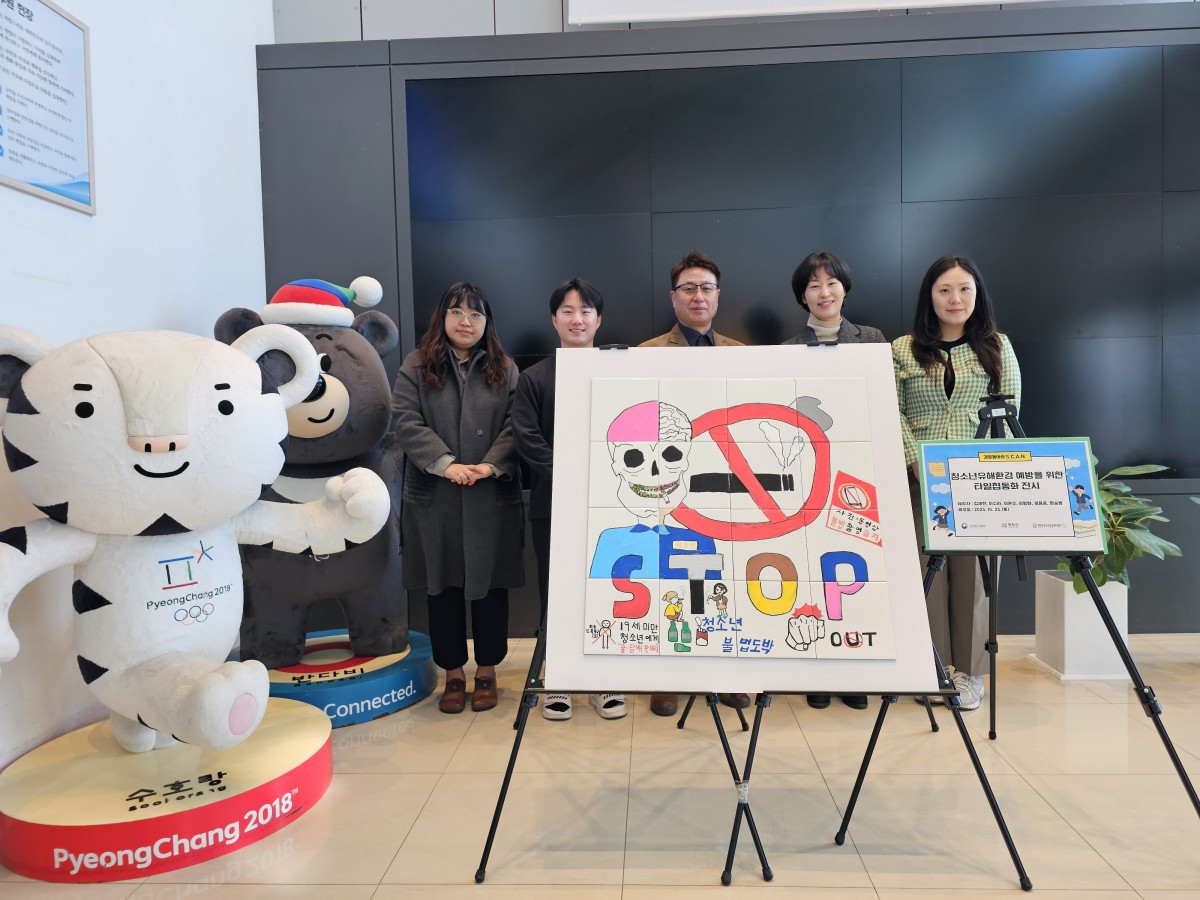 청소년안전망 경찰동아리 S.C.A.N 유해환경 예방을 위한 '타일 협동화' 평창군청 로비 전시